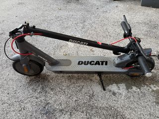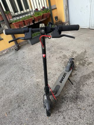 Monopattino elettrico Ducati, ideale per spostamenti urbani. - Design moderno e sportivo. - Logo Ducati ben visibile sul manubrio e sulla pedana.