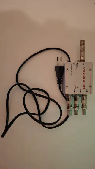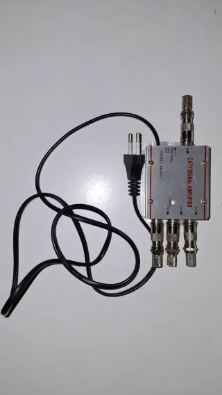 Amplificatore di segnale per TV CATV, modello BA10-DS. - Ingresso IN. - Uscite OUT x3. - Alimentazione 220V-50Hz.