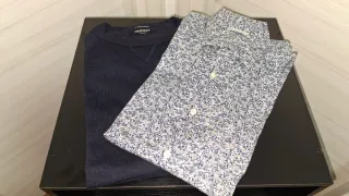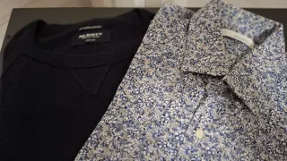 Set composto da un maglione blu e una camicia con fantasia floreale. - Maglione girocollo in maglia a coste. - Camicia a maniche lunghe con bottoni.
