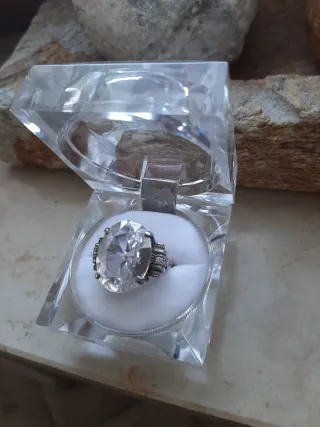Elegante anello in argento 925 con grande zircone centrale - Pietra centrale a forma ovale. - Dettagli decorativi sui lati dell'anello.