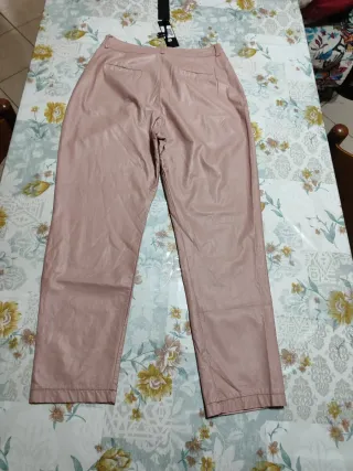 Pantaloni donna ecopelle rosa nuovi