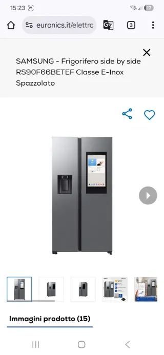 Frigorifero Samsung modello side by side con schermo - Design moderno e capiente. - Finitura in acciaio inossidabile. - Ampio spazio interno per conservare al meglio i tuoi alimenti.