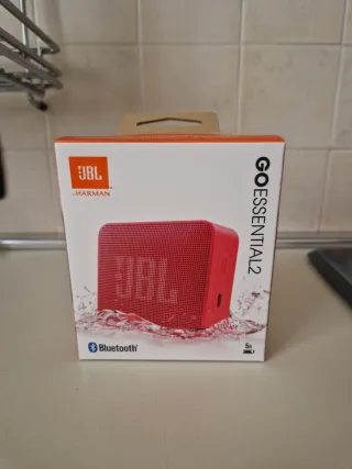 Altoparlante Bluetooth portatile JBL Go Essential 2. - Colore rosso vivace. - Design compatto e leggero. - Connessione Bluetooth per streaming audio. - Autonomia fino a 5 ore.