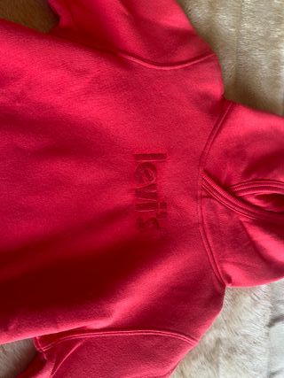 Felpa Levi’s rossa. Cappuccio e tascone anteriore. Misura 10 anni. 140 cm. Usata poco, ben tenuta, nessun difetto.