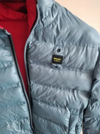 Caldo piumino Blauer per bambino, reversibile con interno celeste. - Cappuccio integrato. - Chiusura con zip. - Tasche laterali.