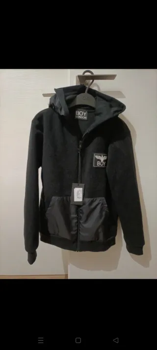 Giacca Boy London per ragazzo in pile con cappuccio e zip frontale. Presenta un tascone frontale in tessuto tecnico e un patch logo sul petto. - Logo Boy London sul petto. - Tascone frontale in tessuto tecnico. - Pile caldo e confortevole. Taglia: XL ragazzo (misure dettagliate) Misure: spalla cm.41 Torace cm.90 Lunghezza cm.59