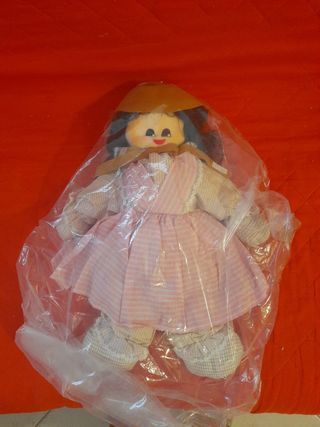 Bellissima bambola vintage, ideale per collezionisti o amanti del retrò. - Bambola di stoffa con vestito rosa a righe. - Cappellino marrone in feltro. - Ottime condizioni, come da foto. - Perfetta per arredare una cameretta o come pezzo da collezione.