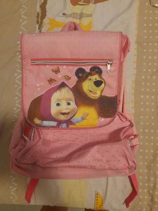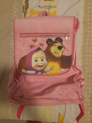 Zaino rosa con Masha e Orso, perfetto per la scuola materna o le piccole avventure! - Immagini di Masha e Orso. - Chiusura con zip. - Piccola tasca frontale con zip. - Ottime condizioni.