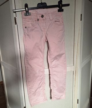 Pantaloni per una bimba di 5 anni, di colore rosa, modello jeans