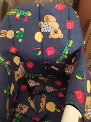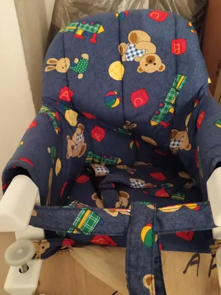 Seggiolino da tavolo con fantasia allegra e colorata. - Fantasia con orsetti, coniglietti e cubi. - Tessuto lavabile.