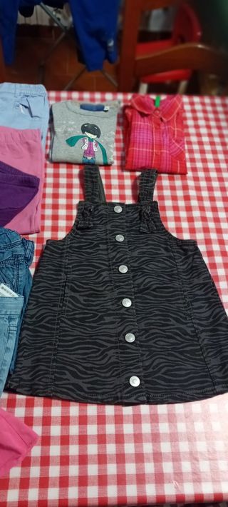 Lotto 19 pezzi composto da:5 pantaloni lunghi,1 tuta mezze maniche con pantaloni lunghi,3 vestiti a salopette,1 camicia manica lunga,1 maglietta manica lunga,5 gonne ,1 pantaloncini corto.1 maglietta manica corta più felpa(entrambe di Hello Kitti).2 euro al pezzo.
