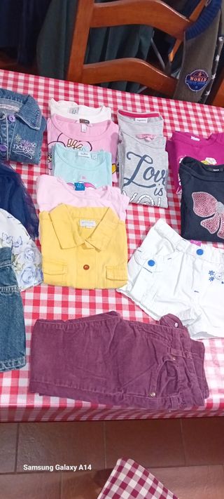 lotto 18 pezzi bambina 2/3 anni in ottime condizioni. Lotto composto da:1 giubbotto di jeans,2 vestiti con pantaloni corti,1 giubbotto imbottito con cappuccio,2 felpe,2 magliette manica lunga,1 camicia manica corta,4 magliette maniche corte,1 pantalone corto,1 pantalone lungo di velluto,3 gonne di cui 1 di jeans. In ottime condizioni 2 euro al pezzo.