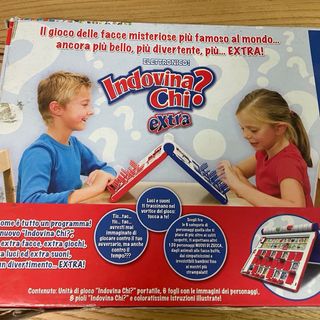 Gioco da tavolo Indovina Chi? Extra elettronico. Un classico rivisitato con nuove funzionalità. - Include unità di gioco portatile. - 6 fogli con immagini dei personaggi. - 8 pioli. - Istruzioni illustrate.