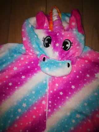 Caldo, morbido in pile, adatto come vestito carnevale o pigiamone comodo. Apertura frontale e dietro con cerniera. Lunghezza totale 130 cm da spalla a caviglia, maniche 53 cm. Taglia S.
