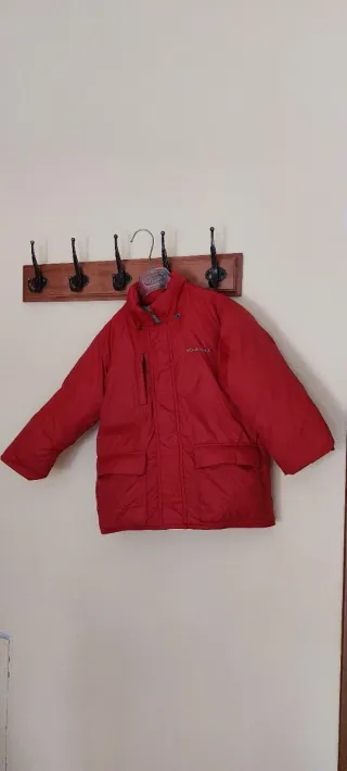 Piumino rosso per neonato con cappuccio marca Coin, taglia 24 mesi. Imbottitura 80%piumino 20%piuma. - Colore rosso vivace, interno beige. - Chiusura con zip e strappi, tasca con zip per skipass. - Logo MOUNTAINS ricamato sul petto.