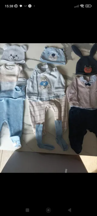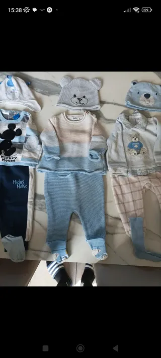 Set di abbigliamento per neonato. - Taglia 1-3 mesi. - Include cappellini e tutine. - Design con orsetto e coniglietto. pantaloni morbidi per dormire Anna bassetti + calzini bianchi e cappellino i do Completo originale marines Mickey mouse con calzini celesti e cappellino Completo fagottino con calzini e cappellino celesti Tutina in ciniglia originale marines con CAlzini e cappellino celesti Tutina mayoral con cappellino blu Tutto a 14€