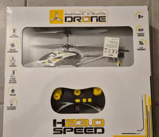 Elicottero telecomandato Ultra Drone H23.0 Speed, ideale per volare. - Controllo remoto a 3 canali. - Giroscopio a 6 assi per stabilità. - Luci LED lampeggianti. - Batteria Li-Poly da 3.7V inclusa. - Caricatore USB. - Adatto per uso indoor.