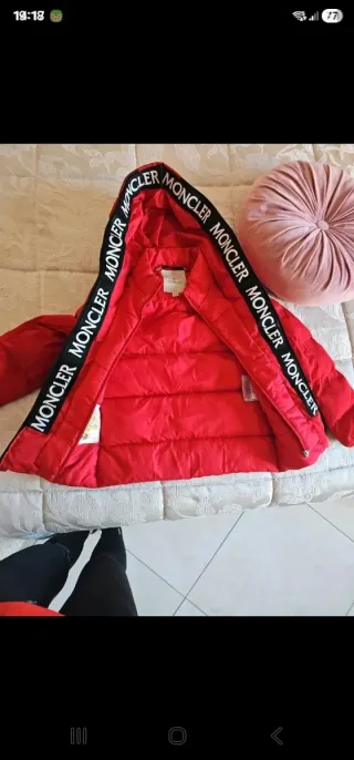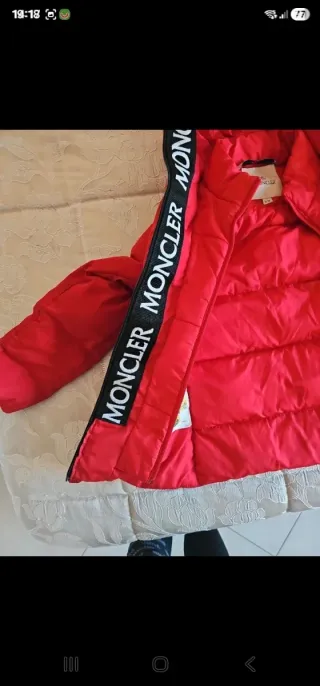 Moncler Piumino Bimbo Rosso con scritta in pelle