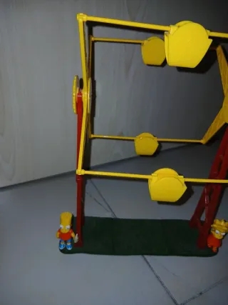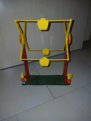 Portafoto a tema The Simpsons, perfetto per gli appassionati della serie. - Struttura gialla con dettagli rossi. - Include due personaggi. - Base verde effetto prato. Articolo come nuovo, in perfette condizioni. - Dotato di 4 clip perfettamente funzionanti. - Formato foto adatto: 10x15 - Rotelle laterali in ottime condizioni, girano bene senza intoppi. - Altezza totale: 30 cm - Articolo originale, uovo di Pasqua kinder 2013