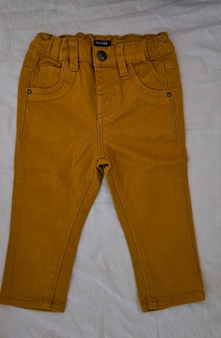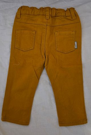 Pantaloni per neonato marca Kiabi, taglia 9/12 mesi. 73/76cm Vestibilità....Presente su altri siti - Colore ocra. - Vita elasticizzata. - Chiusura con bottone e zip.