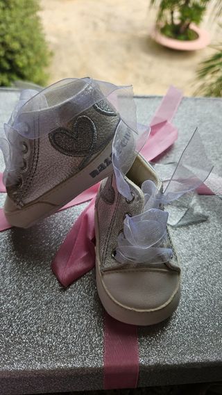 Bellissimi scarponcini per neonata, perfetti per completare ogni outfit. N.20 Indossati 3/4 volte Articolo presente su altri siti online - Colore grigio metallizzato. - Lacci in morbido velluto. - Zip laterale per una facile chiusura.