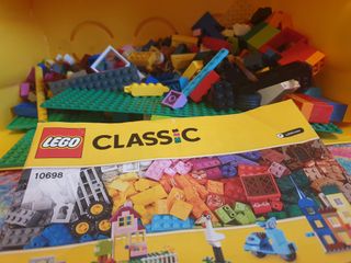 Set di mattoncini con istruzioni di montaggio. Due basi in più aggiunte