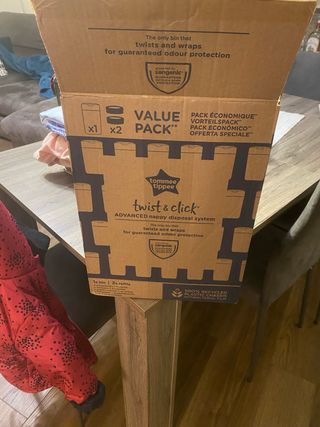 Sistema igienico per lo smaltimento dei pannolini Tommee Tippee Twist & Click. - Il sistema unico che torce e avvolge per una protezione garantita dagli odori. - Confezione Value Pack che include 1 cestino e 2 ricariche. - Tecnologia Sangenic per la protezione da odori e germi. - Realizzato con il 100% di plastica riciclata per il telaio. - Film antibatterico. NUOVO MAI USATO PER DOPPIO REGALO