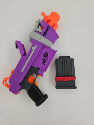 Vendo blaster Nerf Fortnite originale, colore viola/arancione, ispirato al celebre videogioco. 🔋 Funziona a batteria, con sparo automatico/semiautomatico. 🔹 Caratteristiche: Marca: NERF Tema: Fortnite Alimentazione: a batteria Colore: viola / arancione / nero Include caricatore (come da foto) Compatibile con dardi Nerf standard 🔹 Condizioni: Ottime, ben tenuto,funzionante