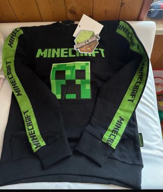 Felpa con cappuccio per bambino a tema Minecraft, nuova con cartellino. - Colore nero con dettagli verdi. - Stampa Minecraft sul petto. - Personaggio Creeper sul davanti. - Logo Minecraft stampato sulle maniche.