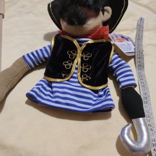 Marionetta da mano a tema pirata, perfetta per il gioco di ruolo e la narrazione. - Design da pirata con cappello, gilet e bandana. - Maniche a righe blu e bianche. - Include un gancio da pirata. - Realizzata in tessuto morbido.
