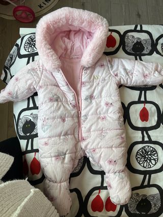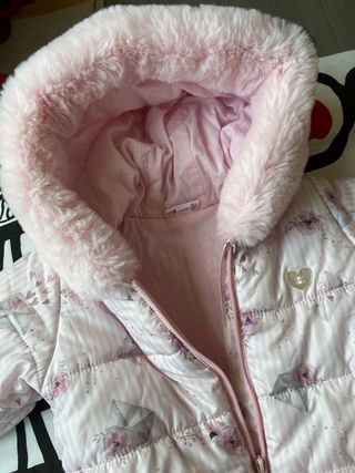 Morbida tuta intera per neonata, perfetta per le giornate più fredde. Il colore rosa tenue e le delicate fantasie floreali la rendono un capo adorabile. - Cappuccio con bordatura in pelliccia sintetica rosa. - Chiusura frontale con zip. - Imbottitura calda e confortevole. - Piedini integrati. Disponibile con guantini inclusi