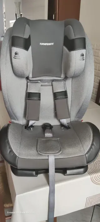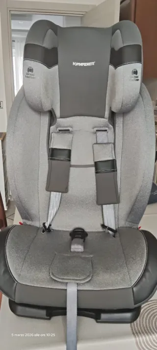 Seggiolino auto Foppapedretti con sistema di protezione dagli impatti laterali. - Design moderno. - Tessuto confortevole. - Cinture di sicurezza regolabili.