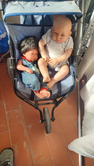 In vendita set di carrozzina per bambini con due bambole. - Carrozzina per bambini. - Due bambole tipo bebé reborn.
