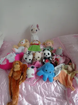 Bellissimo lotto di gioccatoli per bambini, perfetto come regalo oppure per arrichire una cameretta dei più piccoli! Sono inclusive diversi peluch morbidissimi, 2 doudou e un peluche musicale da mettere nel lettino per fare addormentare 😴 per i più piccoli perfetto. Il lotto include 12 pezzi, 2 doudou, un peluche per il sonno e tanti peluche e bambole. - Bing - Peluche a forma di scimmia marrone. - peluche coniglio rosa. - bambola con capelli biondi. - Doudou coniglio bianco e arcobaleno. - peluche capuccietto roso con vestito verde. - Doudou elefantino - Doudou sonaglio musicale a forma di per Buone condizioni con a volte seg