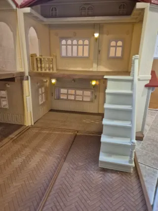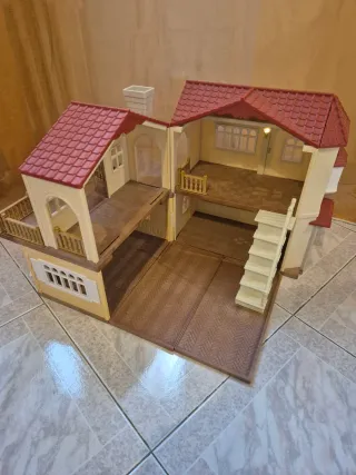 Bellissima casa a due piani per le tue bambole Sylvanian Families. Perfetta per creare storie e avventure. Luci funzionanti ma verrà venduta senza le batterie. - Tetto rosso. - Balcone. - Scale interne. - Camino.