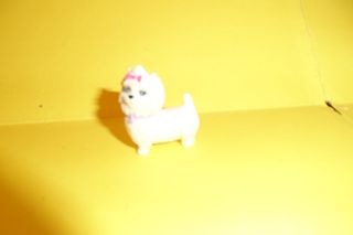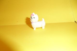 Cagnolino bianco con fiocco rosa e collare viola, parte della collezione Polly Pocket 2 Cool at the Plaza. - Cane in miniatura. - Accessorio per bambole.