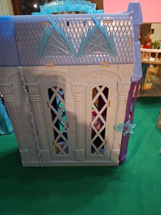 Castello di Elsa da Frozen ambientato ad Arendelle. Include le bambole di Elsa e Anna, Olaf, un tavolo con sedie e altri accessori. - Castello di Elsa da Frozen - Include bambole di Elsa e Anna - Accessori inclusi: Olaf, tavolo, sedie, letto, camino