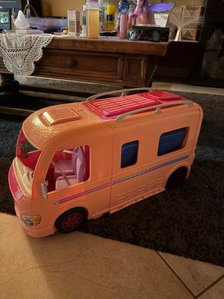 Bellissimo camper Barbie, quasi nuovo e completo di accessori. - Camper rosa apribile. - Bambola Barbie inclusa. - Tavolino da picnic con sedie. - Accessori vari per il gioco.