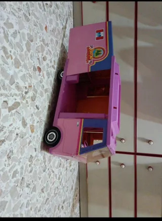 Camper rosa per bambole. - Tetto apribile. - Tenda esterna. - Sedie pieghevoli incluse. Camper Barbie in buone condizioni, con lati apribili. Unico difetto: perno del vetro anteriore rotto (vedi foto)