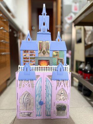 Preziosa casa delle bambole di Frozen, ideale per giocare. Include un castello con diverse stanze, un tavolo con sedie e altri accessori. Il castello è in ottimo stato ed è perfetto come regalo. - Castello di Frozen per bambole Barbie. - Include vari mobili e accessori. - Ideale per ragazze dai 3 anni in su.