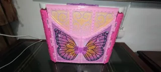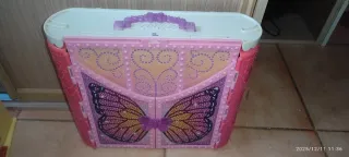 Bellissima casa-valigia di Barbie, ideale per giocare. È rosa e viola, con dettagli brillanti. - Si piega per facilitarne il trasporto e lo stoccaggio. - Include toletta e letto. - Perfetta per le bambole Barbie.