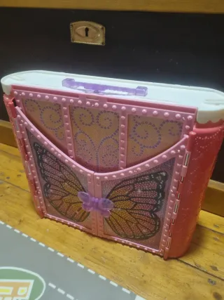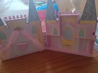 Castello o valigia portatile, in buone condizioni e in perfette condizioni, include un tavolo con le sue tre sedie, una vasca trasparente, l'armadio con le sue tre corrispondenti grucce, un letto con baldacchino e il toeletta con i rispettivi gioielli. Tutti gli accessori visibili possono essere riposti all'interno del castello e inoltre possono essere trasportati ovunque grazie alla sua maniglia. A 23€