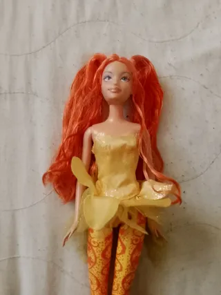 Bambola Barbie in ottime condizioni, sembra nuova. Perfetta per collezionisti o per giocare. - Ali trasparenti e colorate. - Vestito rosa scintillante. - Dettagli floreali sul vestito.