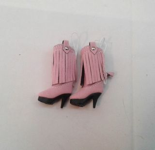 Stivali rosa per Barbie, realizzati in ecocamoscio. - Dettagli con frange.