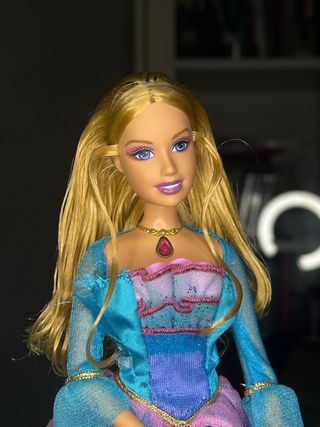 im selling this BARBIE — AND THE THREE MUSKETEERS (2009) ARAMINA. she's been restored and she was part of my duplicates barbies. she comes with her original shoes and dress which needs a little restore. her mask is intact and raises up perfectly. for any question feel free to contact me! ♡ - Vestito scintillante blu - Maschera decorata - Stivali alti blu