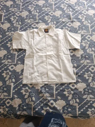 Camicetta a maniche corte, di colore bianco. - Tessuto leggero e traspirante. - Collo classico. - Chiusura con bottoni. - Taschino sul petto.