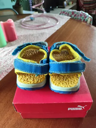 Sandali da mare per bambini, marca Arena. - Colore blu e giallo - Chiusura a velcro - Suola antiscivolo -Taglia 27 Segni di usura per contatto con il mare