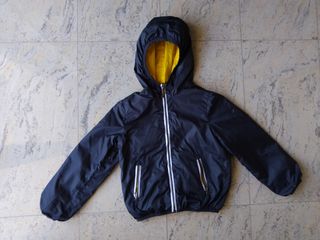 Giubbino leggero Manuel Ritz double face, con un lato giallo e l’altro blu, dotato di cappuccio e zip centrale. Pratico e versatile, ideale per la mezza stagione. Elastico su polsini e fondo per una vestibilità confortevole. Logo ricamato sul petto. Modello unisex, in ottime condizioni e senza difetti.