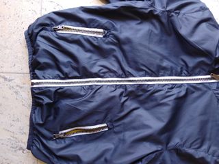 Piumino in piuma d'oca color argento marca Melby con cappuccio fisso e tasche con cerniere. Colore molto abbinabile. E' in buono stato generale; si segnalano i seguenti segni di usura: su 4 dei 7 Bottoni metallici mancano i microscopici strassini (foto), un bottone metallico internamente è uscito dalla stoffa ma non si nota dall'esterno (foto). Lievi tracce di usura sui polsini (foto) Vedi tutto in foto È imbottito di piume d'oca ma non troppo spesso Veste giusto, non abbondante