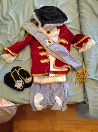 Bellissimo costume da Il Carnevale Veneziano ispirato al Marchese del Grillo, taglia 2 anni. Perfetto per feste e occasioni speciali. - Giacca rossa con dettagli dorati e pelliccia bianca. - Fascia azzurra con decorazioni. - Pantaloncini azzurri. - Cappello nero. - Scarpine nere con fiocco e perla. Vendo vestito utilizzato due volte, in ottime condizioni (manca solo una perlina sulla scarpetta che può essere comprata ed incollata).